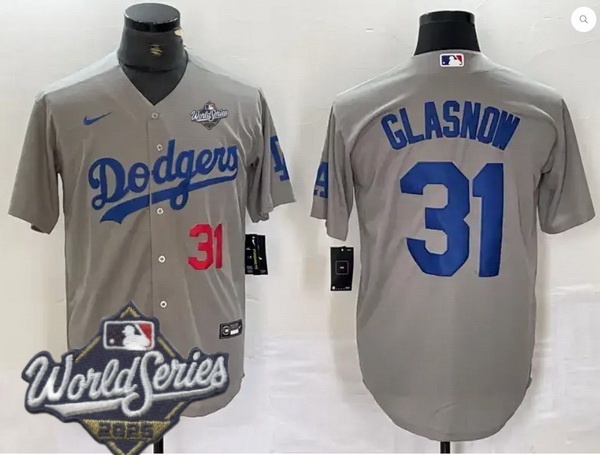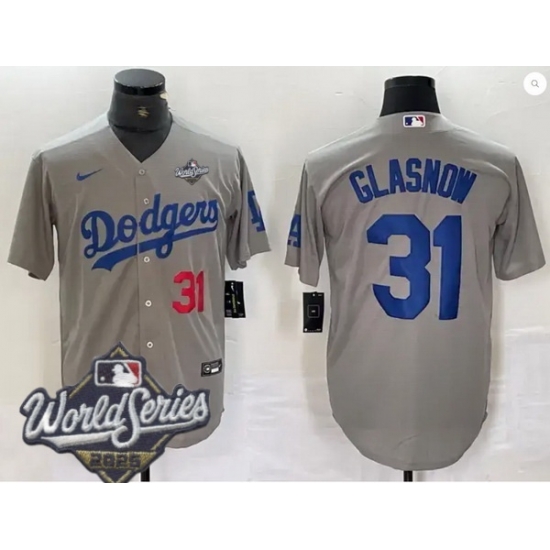 Home :: MLB :: 2025 World Series :: Los Angeles Dodgers :: Men Los Angeles Dodgers 31 Tyler Glasnow 2025 World Series Cool Base Stitched Baseball Jersey Gray