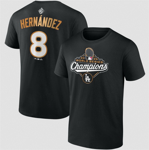 Home :: MLB :: MLB T-Shirt :: Los Angeles Dodgers :: Men Los Angeles Dodgers 8 Enrique Hernandez Black 2025 World Series Champions Name 26 Number T Shirt