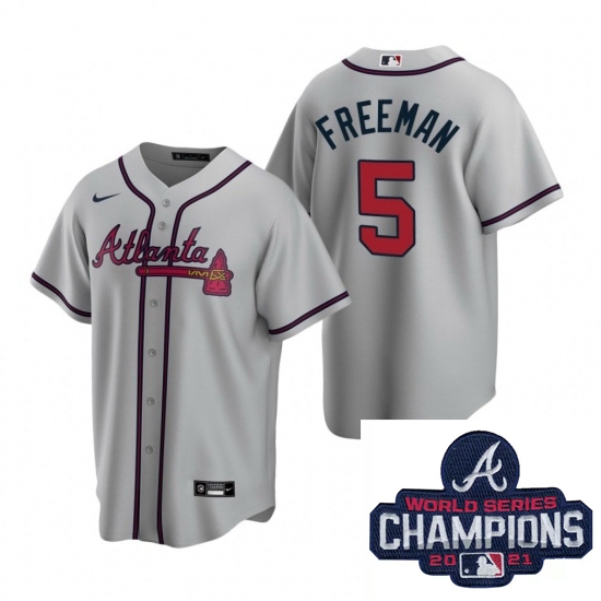 Home :: MLB :: 2021 World Series :: Atlanta Braves :: Men Nike Atlanta Braves 5 Freddie Freeman Gray Road Stitched Baseball Stitched MLB 2021 Champions Patch Jersey