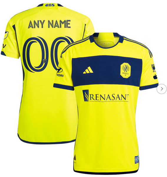 - Mens Nashville SC adidas Yellow 2024 The 615 Kit Replica Custom Jersey
