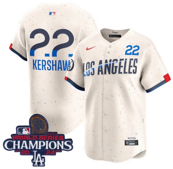 Home :: MLB :: 2024 World Series Champions :: Youth :: Youth Nike Los Angeles Dodgers Clayton Kershaw #22 Ice Cream 2024 World Series Champions Stitched MLB Jersey