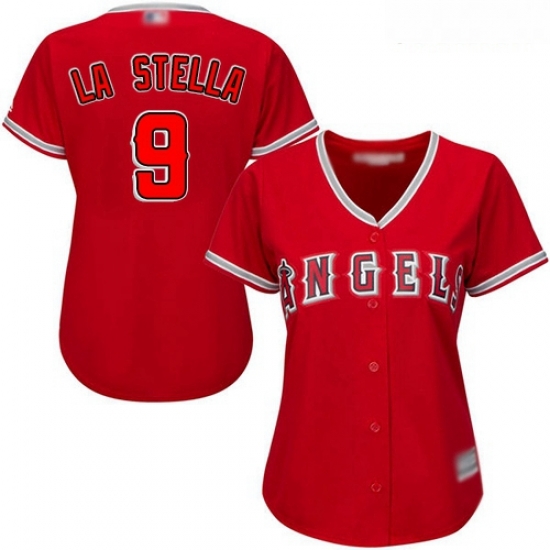 - Angels #9 Tommy La Stella White Pink Fashion Women Stitched Baseball Jersey