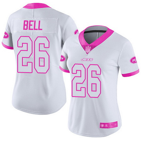 - Jets 26 LeVeon Bell White Pink Womens Stitched Football Limited Rush Fashion Jersey