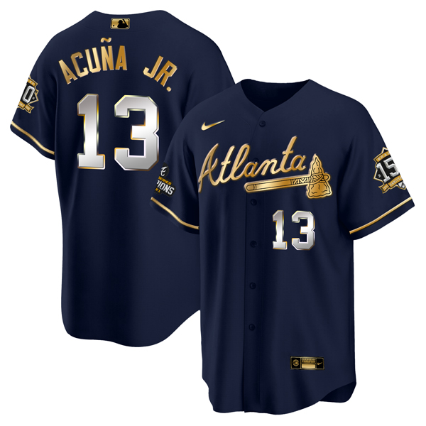 - Mens Majestic Atlanta Braves 44 Hank Aaron Replica Blue Alternate Road Cool Base MLB Jersey