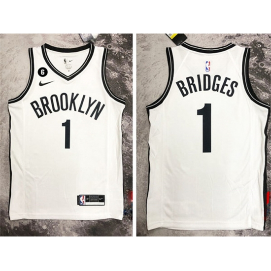 - Men Brooklyn Nets 1 Mikal Bridges White Stitched Basketball Jersey