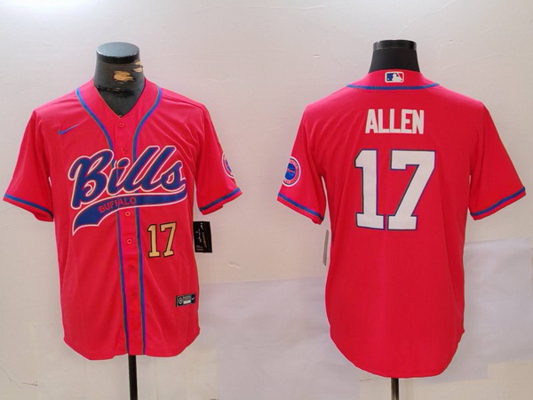- Men Buffalo Bills 17 Josh Allen Navy Team Cool Base Stitched Baseball Jersey 5