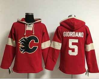 - Calgary Flames 5 Mark Giordano Red Women Old Time Heidi NHL Hoodie