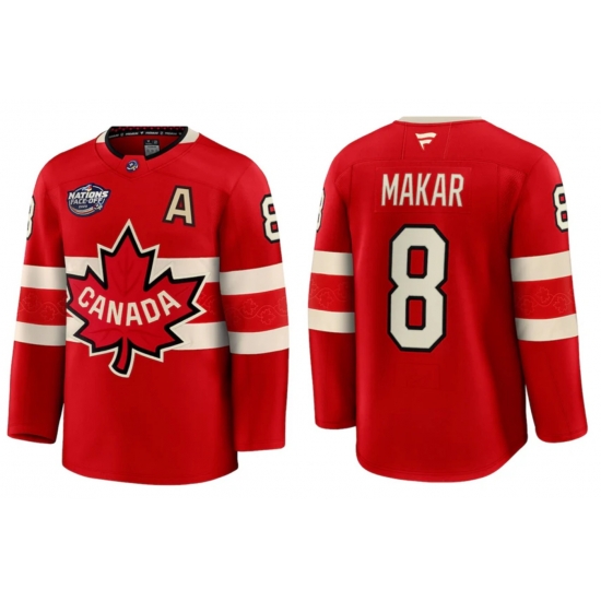 - Men Canada Cale Makar #8 Red 2025 4 Nations Face Off Premium Stitched Jersey