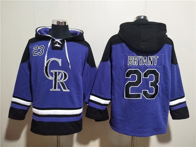 Home :: Hoodie T Shirt :: MLB Hoodie :: Colorado Rockies :: Men :: Men Colorado Rockies 23 Kris Bryant Purple Ageless Must Have Lace Up Pullover Hoodie
