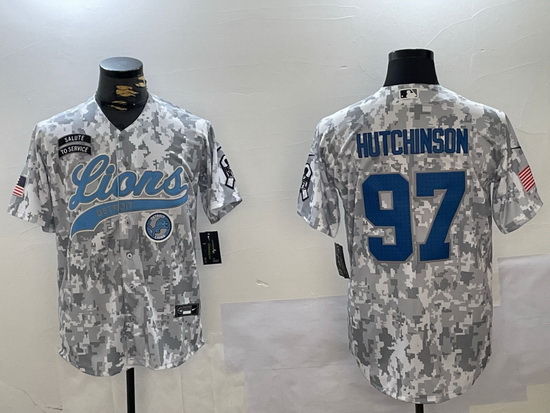 - Men Detroit Lions 14 Amon Ra St Brown Grey Cool Base Stitched Baseball Jersey 1