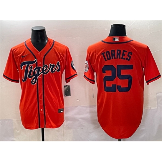 - Men Detroit Tigers 28 Javier B E1ez Orange With Patch Cool Base Stitched Baseball Jersey