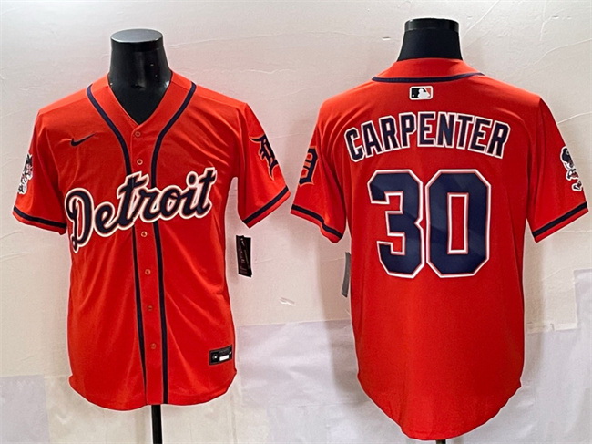 - Men Detroit Tigers 30 Kerry Carpenter Black With Patch Cool Base Stitched Baseball Jersey