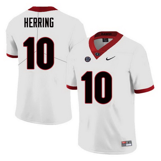 - Men Georgia Bulldogs #10 Malik Herring College Football Jerseys Sale-White