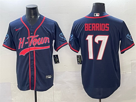 - Men Houston Texans 7 C J Stroud Navy With Patch Cool Base Stitched Baseball Jersey 1
