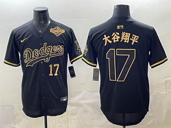 - Men Los Angeles Dodgers 17 Shohei Ohtani Number Black Gold Stitched Cool Base Nike Jersey