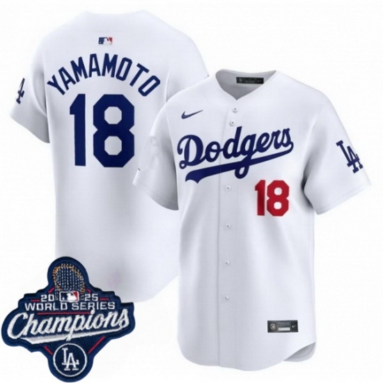 Home :: MLB :: 2025 World Series :: Los Angeles Dodgers Champions :: Men Los Angeles Dodgers 18 Yoshinobu Yamamoto Cool Base 2025 World Champions Stitched Baseball Jersey White