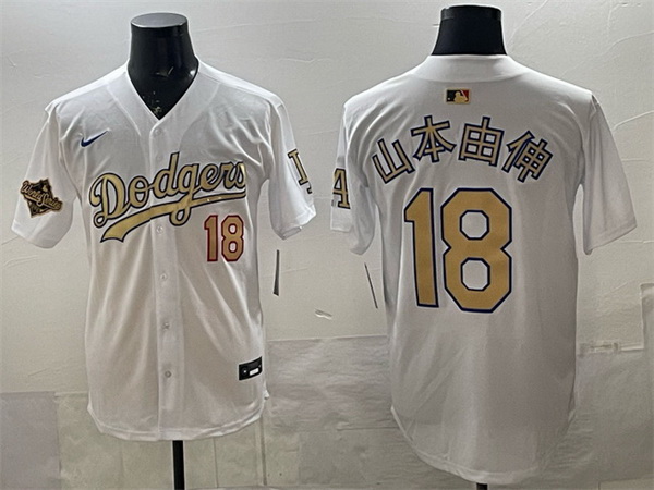 - Men Los Angeles Dodgers 34 White Gold Championship Cool Base Stitched Jersey 5