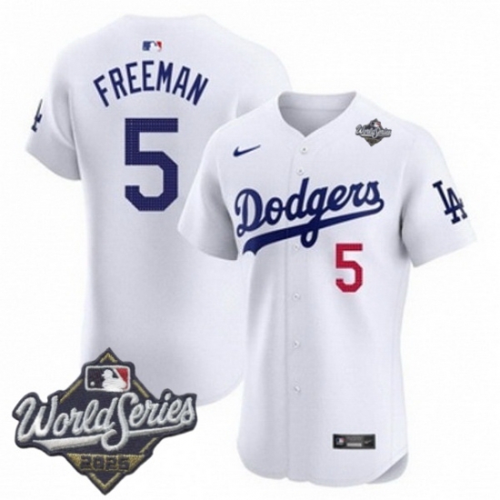 Home :: MLB :: 2025 World Series :: Los Angeles Dodgers :: Men Los Angeles Dodgers 5 Freddie Freeman 2025 World Series Cool Base Stitched Baseball Jersey White