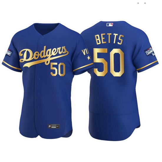 - Men Los Angeles Dodgers 50 Mookie Betts Split White Blue Two Tone Jersey