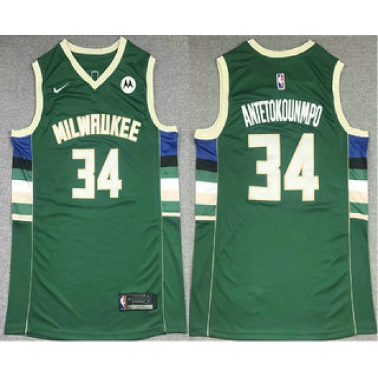 - Men Milwaukee Bucks 34 Giannis Antetokounmpo Green Stitched Jersey