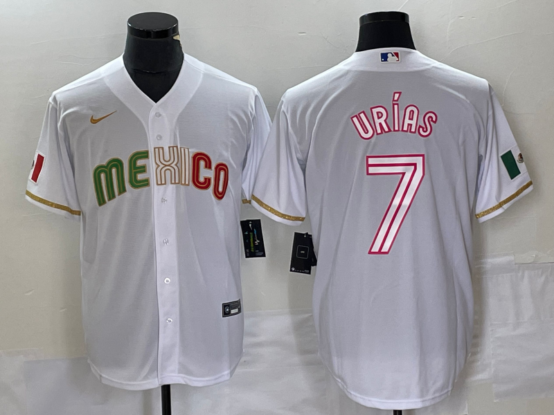 - Men Mexico Baseball #7 Julio Urias Number 2023 White World Baseball Classic Stitched Jersey1