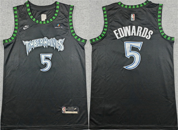- Men Minnesota Timberwolves 5 Anthony Edwards Grey Black Stitched Jersey