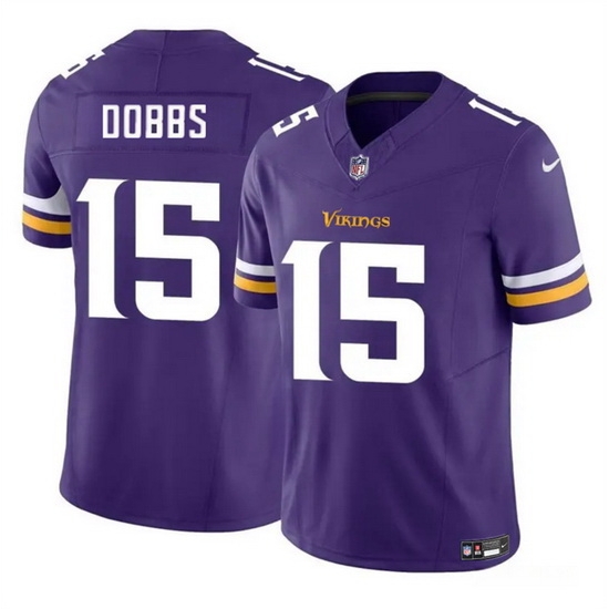 - Men Minnesota Vikings 15 Josh Dobbs Purple 2023 F U S E Throwback Limited Stitched Jersey