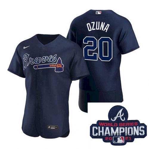 Home :: MLB :: 2021 World Series :: Atlanta Braves :: Men Nike Atlanta Braves 20 Marcell Ozuna Blue Alternate Stitched Baseball Stitched MLB 2021 Champions Patch Jersey