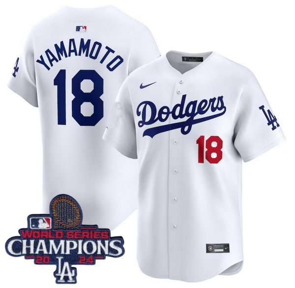 Home :: MLB :: 2024 World Series Champions :: Men :: Men Nike Los Angeles Dodgers Yoshinobu Yamamoto #18 White Flex Base 2024 World Series Champions Stitched MLB Jersey