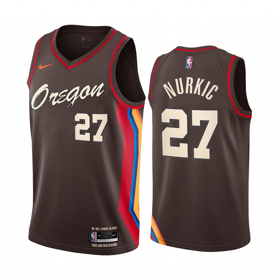 - Men Nike Portland Blazers 5 Rodney Hood Chocolate NBA Swingman 2020 21 City Edition Jersey