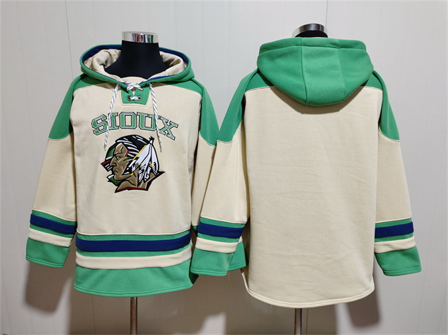 - Men North Dakota Fighting Hawks Blank Cream Green Lace Up Pullover Hoodie
