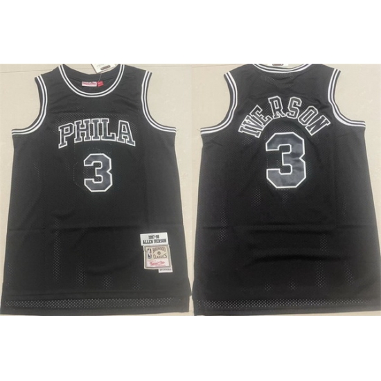 - Philadelphia 76ers 3 Allen Iverson Black 2000 01 Hardwood Classics Flames Swingman Jersey