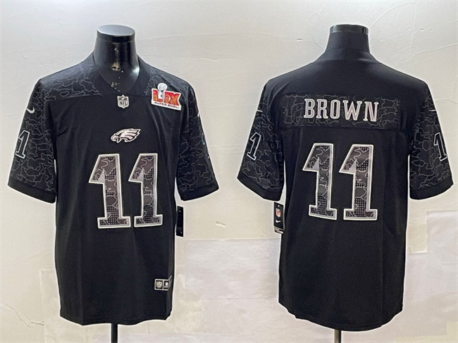 Home :: NFL :: 2024 2025 Super Bowl LIX :: Philadelphia Eagles :: Men Philadelphia Eagles 11 A J Brown Black 2025 Super Bowl LIX Patch Reflective Vapor Untouchable Limited Stitched Football Jersey