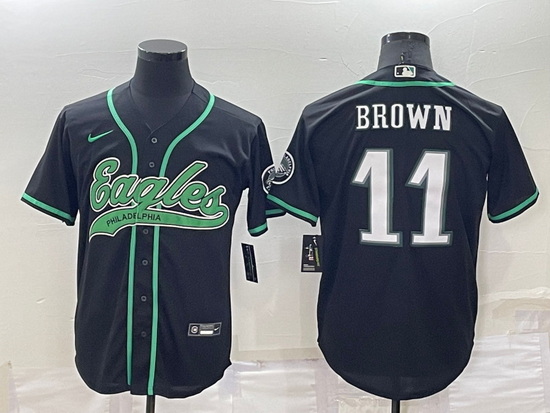 - Men Philadelphia Eagles 11 A J Brown Green Cool Base Stitched Baseball Jersey