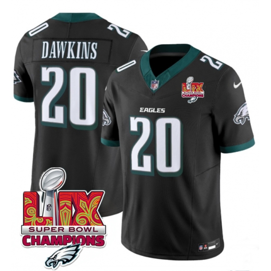Home :: NFL :: 2024 2025 Super Bowl LIX :: Philadelphia Eagles :: Men Philadelphia Eagles 20 Brian Dawkins Black 2025 Eagles Logo Super Bowl LIX Patch New F U S E Vapor Limited Stitched Football Jersey