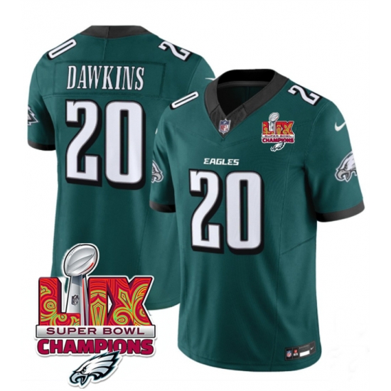 Home :: NFL :: 2024 2025 Super Bowl LIX :: Philadelphia Eagles :: Men Philadelphia Eagles 20 Brian Dawkins Green 2025 Eagles Logo Super Bowl LIX Patch New F U S E Vapor Limited Stitched Football Jersey