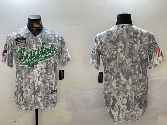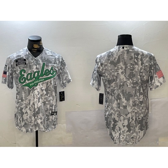 - Men Philadelphia Eagles White Team Big Logo Cool Base Stitched Baseball Jersey