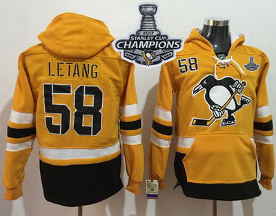 - Men Pittsburgh Penguins 58 Kris Letang Gold Sawyer Hooded Sweatshirt Stitched NHL Jersey