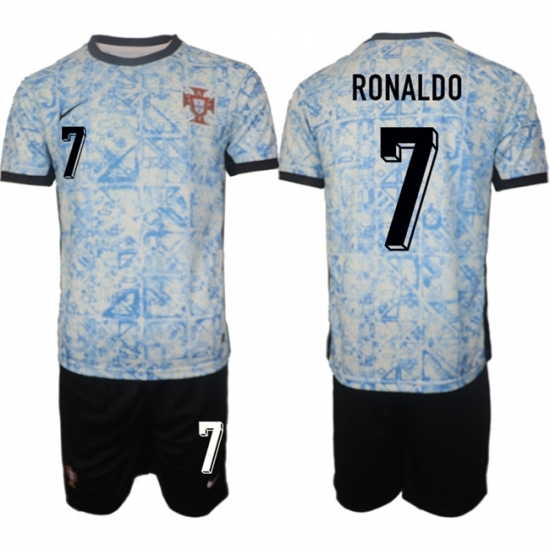 - Men Portugal Team Custom 2024 25 White Blue Away Soccer Jersey Suit