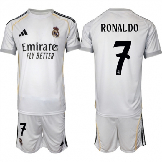 - Men Real Madrid 7 Ronaldo 25 26 White Home Soccer Jersey Suit