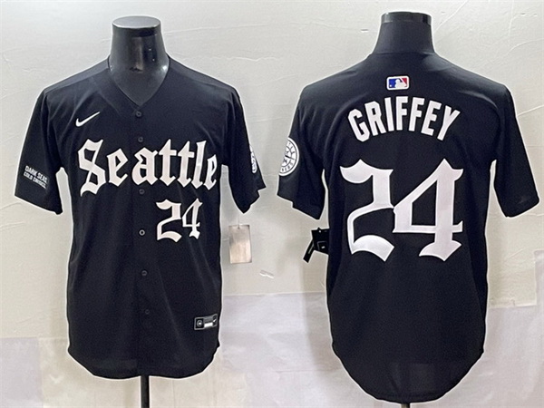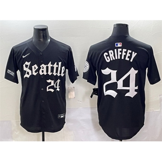 - Mens Majestic Seattle Mariners 24 Ken Griffey Replica Navy Blue Alternate 2 Cool Base MLB Jersey