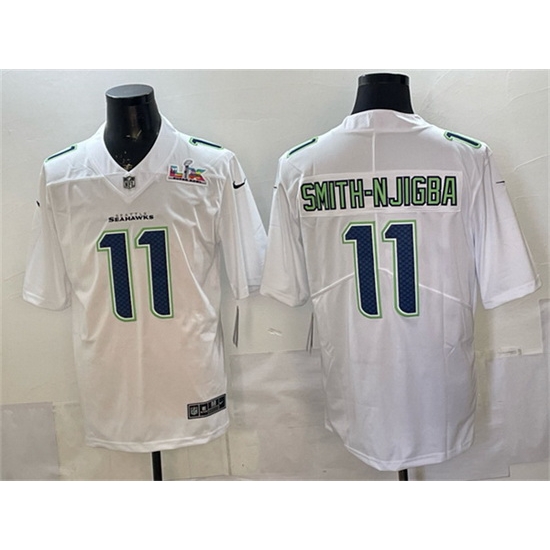 Home :: NFL :: 2025 2026 Super Bowl LX :: Seattle Seahawks :: Men Seattle Seahawks 11 Jaxon Smith Njigba White 2025 Super Bowl LX Patch Tundra Fashion Vapor Untouchable Limited Stitched Football Jersey