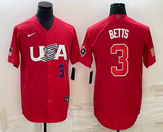 - Men USA Baseball #3 Mookie Betts 2023 Red World Classic Stitched Jerseys