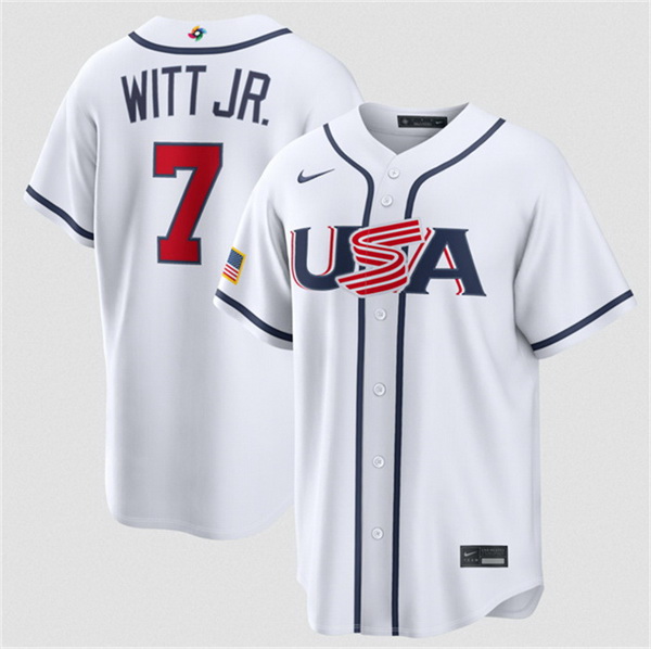 Home :: MLB :: 2026 World Baseball :: USA :: Men USA Baseball 7 Bobby Witt Jr White 2026 World Baseball Classic Home Stadium Stitched Jersey