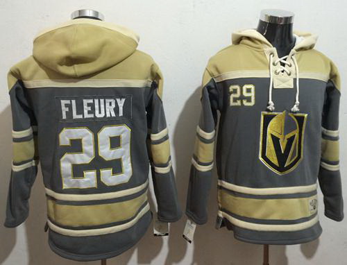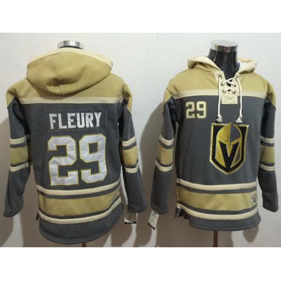 - Men Vegas Golden Knights 29 Marc Andre Fleury Grey Gold Name 26 Number Pullover NHL Hoodie