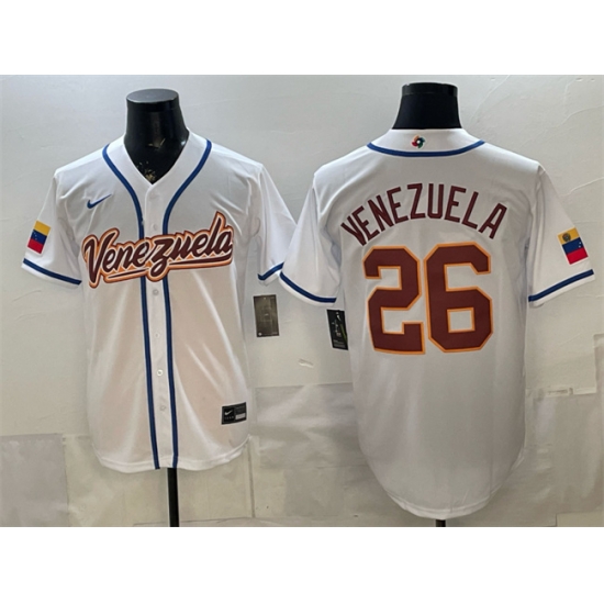 - Men Venezuela Baseball Blank White 2026 World Baseball Classic Home Stadium Stitched Jersey