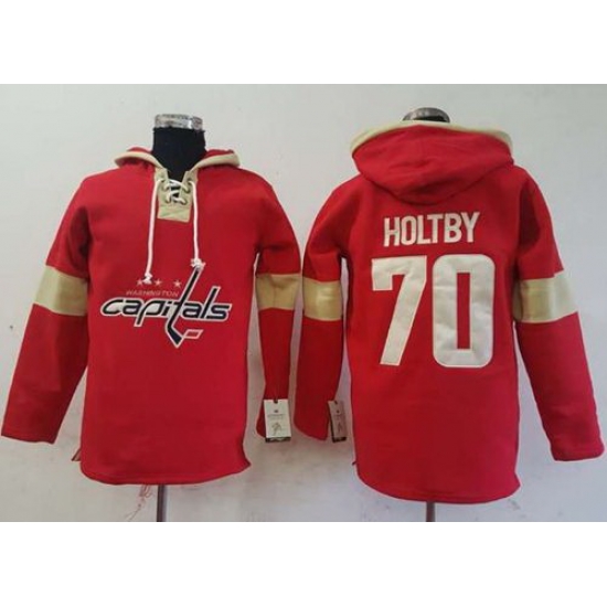 - Men Washington Capitals 70 Braden Holtby Red Pullover Hoodie Stitched NHL Jersey