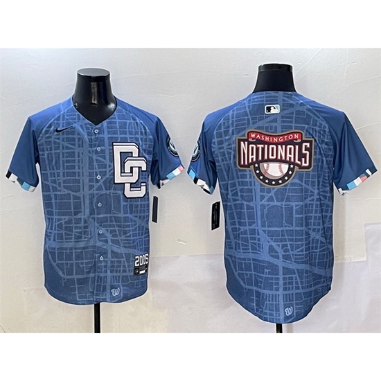 - Men Washington Nationals Navy Big Logo In Back Stitched Baseball Jersey