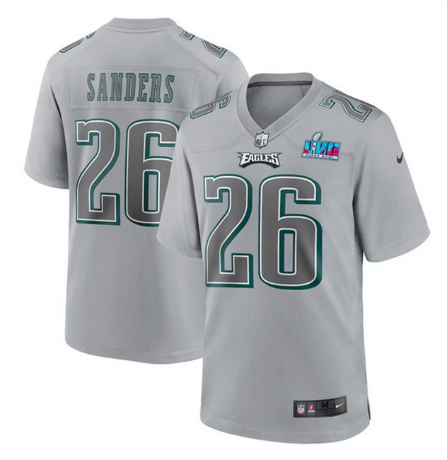 Home :: NFL :: 2023 Super Bowl LVII :: Philadelphia Eagles :: Men Women Youth Toddler Philadelphia Eagles 26 Miles Sanders Grey Super Bowl LVII Patch Atmosphere Fashion Stitched Game Jersey