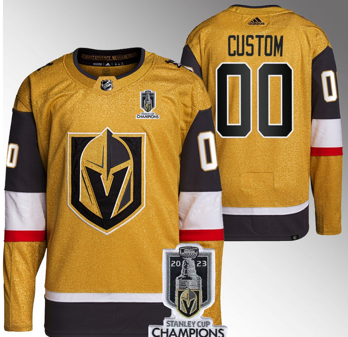 - Men Vegas Golden Knights Customized Gold 2023 Stanley Cup Final Stitched Jersey